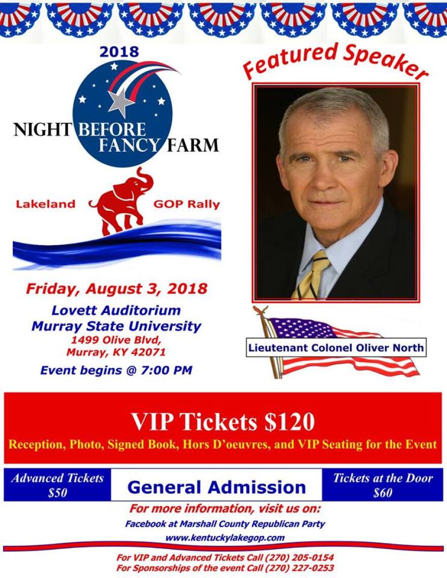 The Marshall and Calloway County Republican parties jointly host the ‘Night Before Fancy Farm’ on August 3 featuring Lt. Col Oliver North.
