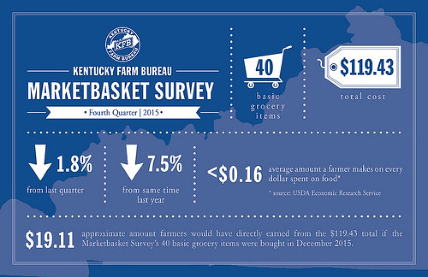 A recent Kentucky Farm Bureau report shows grocery prices in the commonwealth have fallen for the fourth quarter in a row.