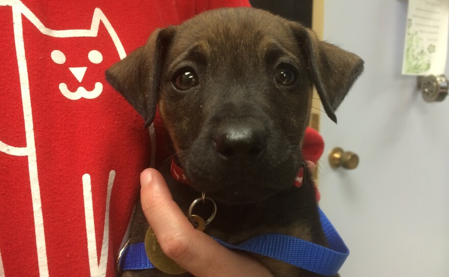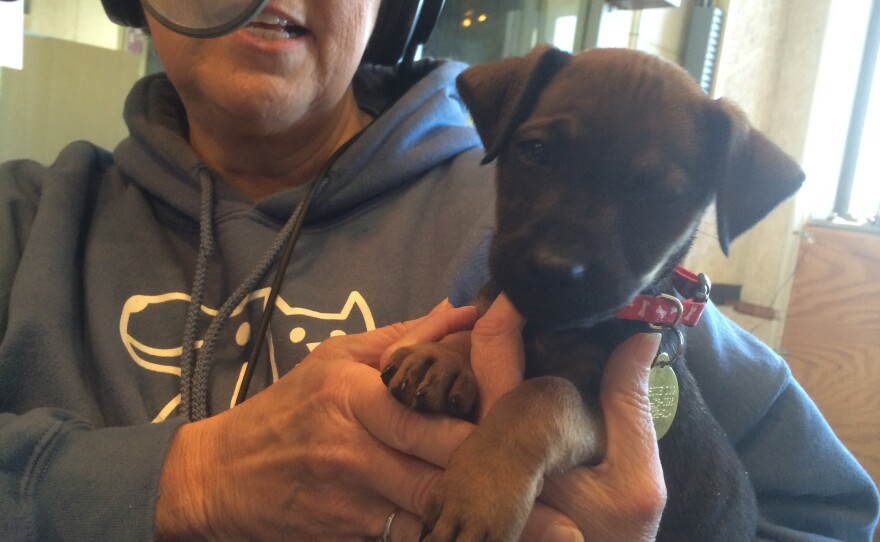 Puppies! Our favorite day of the month at WKMS. This time we met two seven-week-old puppies, Max and Sweet Pea, up for adoption. Max is black and Sweet Pea has brown and black coloring (kind of like a German Shepherd). These puppies are mixed-breed with features from a few different breeds. Also, they came from a litter of 15! Max and Sweet Pea were very adorable and sweet. You'll hear Max throughout the interview, watching his sister being playful. What could he be saying?