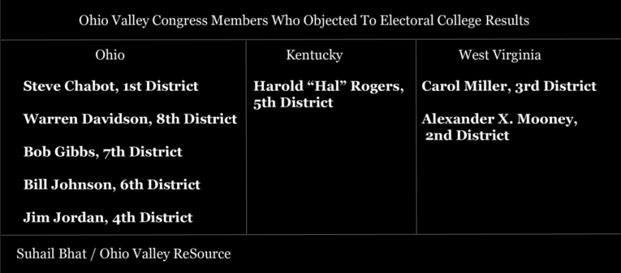However, even after witnessing a violent insurrection, eight Republican Representatives from Ohio, Kentucky and West Virginia joined other Republicans in objections to some of the state electoral results.