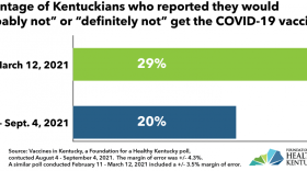 Hospitalizations increased Wednesday. Nearly 1,070 Kentuckians are currently hospitalized with COVID-19, 286 are in the ICU, and 125 are on ventilators.