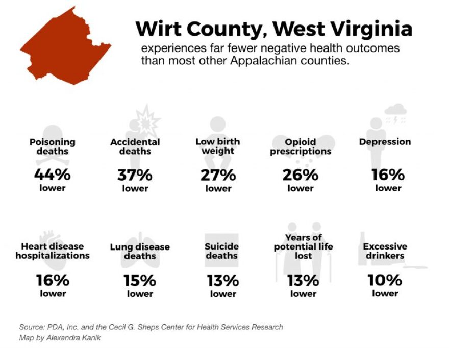 Meanwhile, Wirt County did not exceed expectations in every health outcome the research team analyzed.
