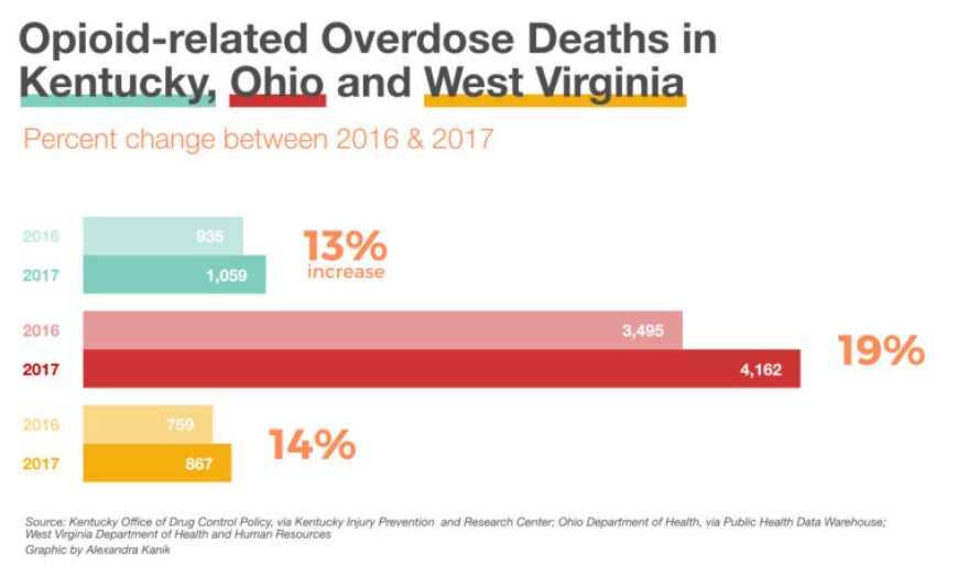 A total of 1,565 people died of fatal overdoses last year in Kentucky, up about 11 percent from 2016. And seven of those people were in rural Letcher County, according to data from the Kentucky Office of Drug Control Policy.